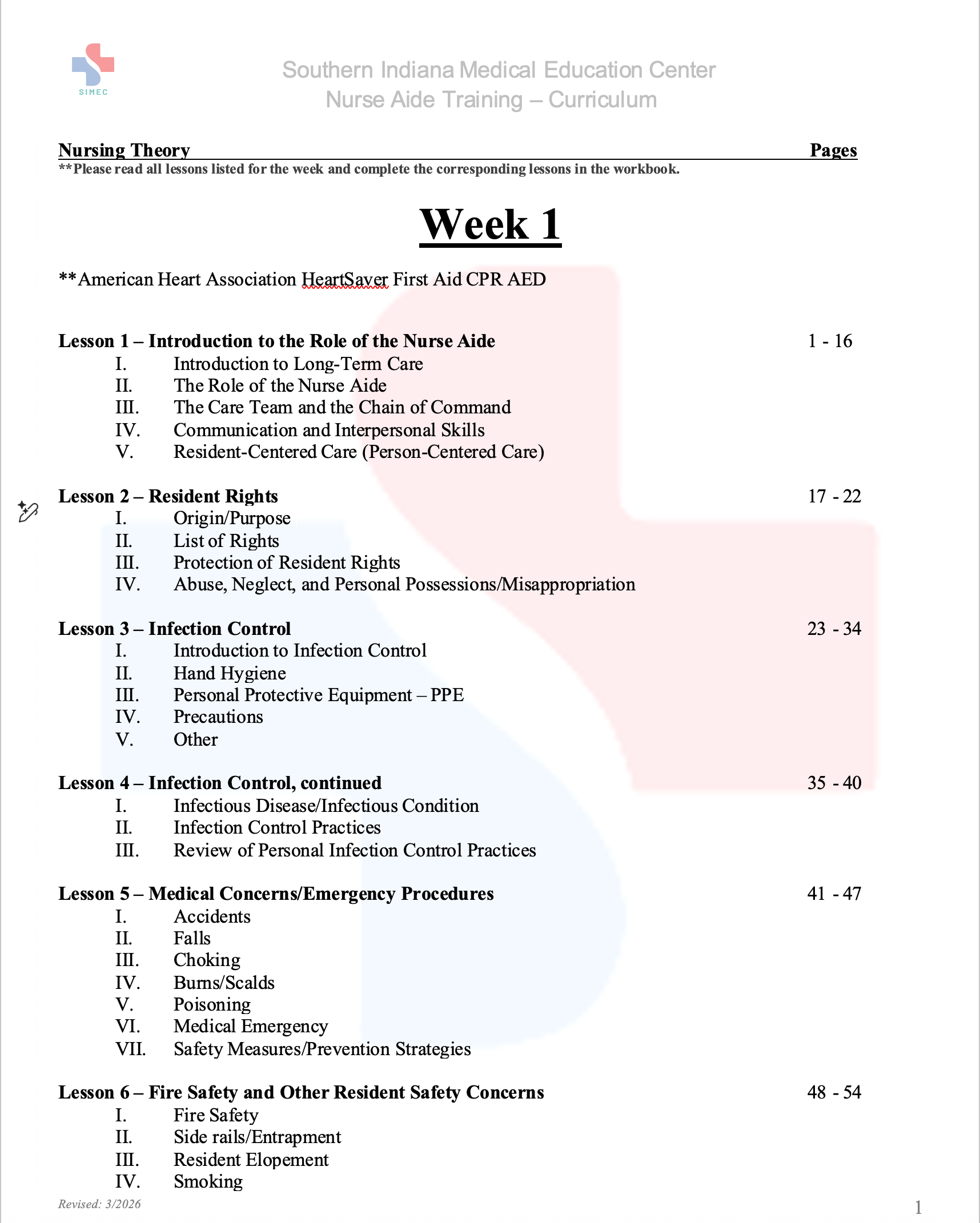 (4) Tuition Payment: The first (1st) payment for the Nurse Aide Trining is due before the start of the course. Make a payment at https://simeconline.com/